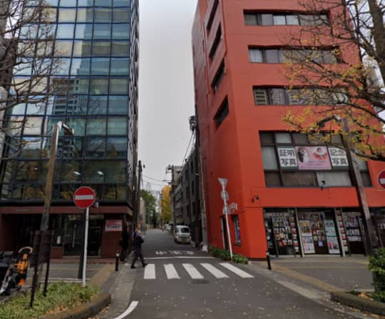 1分ほど歩いたところにある、パチンコPIA前の十字路を左折します。