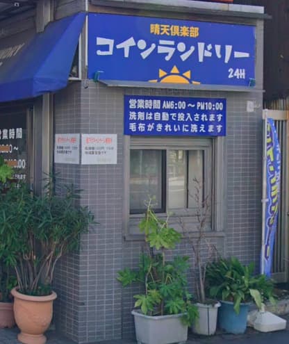 横断歩h道を渡って左に進んでいくと、右手に『コインランドリー』が見えてくるので、右に曲がり進んでいく。