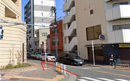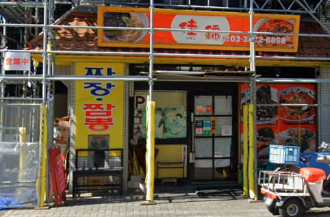 しばらく歩いていくと、左手に韓国料理や『佳綿』が見えてくるので左側にある次の横断歩道を渡っていく。