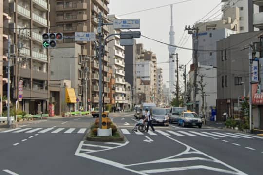「日本堤一丁目」の交差点を右に曲がって進みましょう。