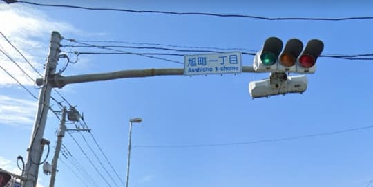 大きな道路に出たら、旭町一丁目の交差点を左折
