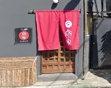そのうちに、左手に赤い暖簾の店が見えてくるよ。