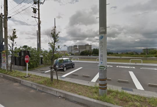 ②加賀温泉郷に滞在しているときは、加賀片山津温泉総湯公園を目安にするといい。公園から温泉街通りを経由して1分約65メートル。