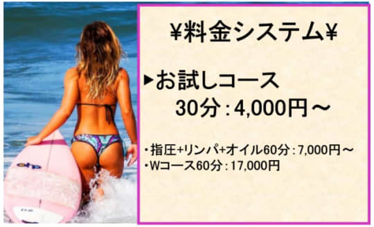 料金 | 30分3,000円~ | 60分8,000円~ | 40分9,000円~ |