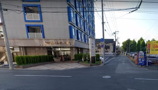 そのまま真っすぐ進んで、東横インが道路を挟んで向こう側へ見えたら、左へ曲がる。