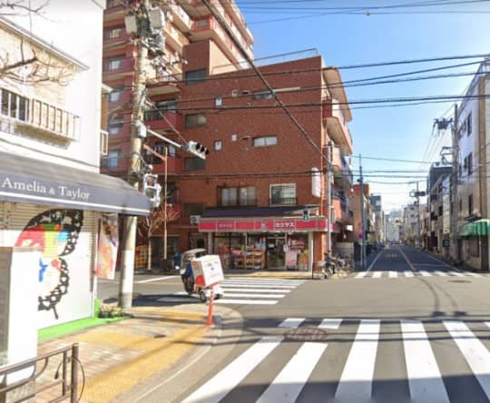 金美館通りをしばらく道なりに進み、カクヤスが見えてきたら十字路を左に進むっす。