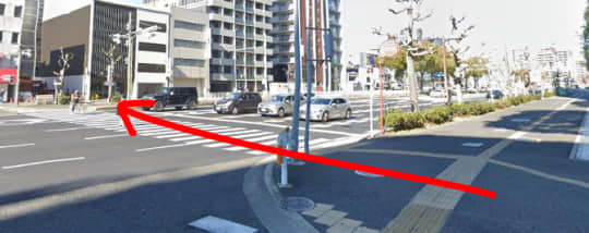 また、目的地は左方面なので、さらに左の横断歩道を渡ってください。