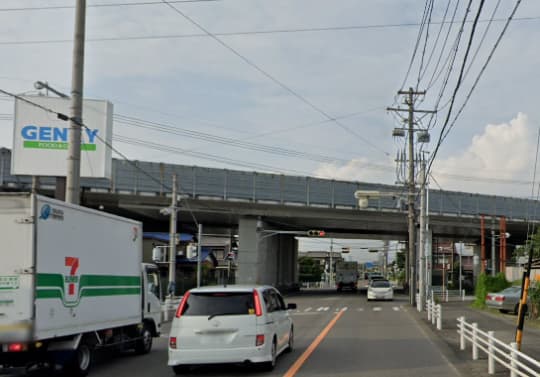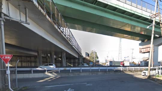 高速道路の下をくぐりスグに交差点があるので、そこを左に曲がって進みましょう。