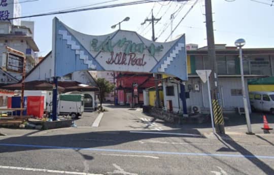 またひたすら道なりに進むと、左手にシルクロードのアーケードが見えてくるんで、アーケードをくぐってもうしばらく進み、突き当りを右折するっすよ。