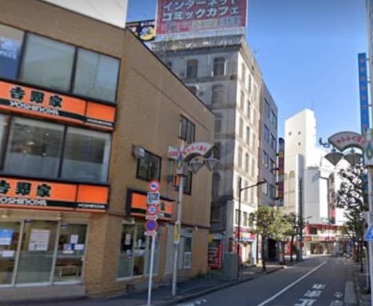 飲食店などが立ち並ぶ通りの左側に「Dio(旧エモーション)」のお店があるよ。