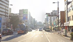 曙町のバス停を降り、エディオンの看板方面へまっすぐ行く。
