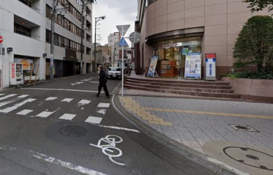 目の前に横断歩道がある交差点があるので、右に入っていきますね。