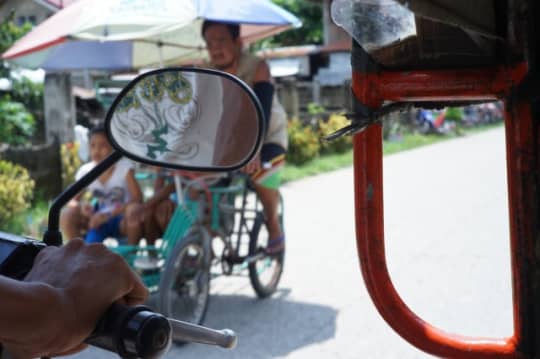 ジプニーやトライシクルに乗って遊びに行った結果、スコールに直撃し大変な目に、、、。 画像はトライシクルです。